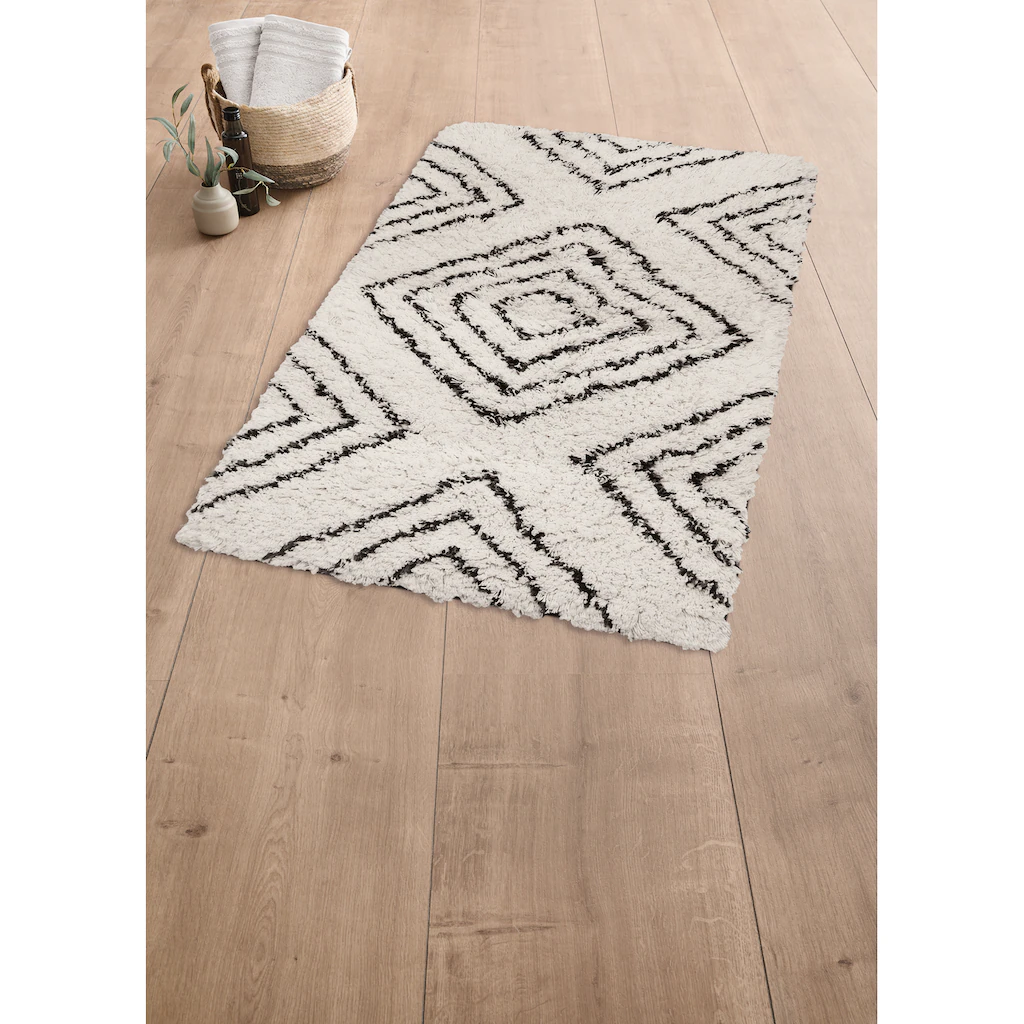 Kleine Wolke Badematte »Boho«, Höhe 36 Mm, Rutschhemmend Beschichtet, Fußbodenheizungsgeeignet, Badteppich, Modernes Rauten Muster, Reine Baumwolle, Waschbar