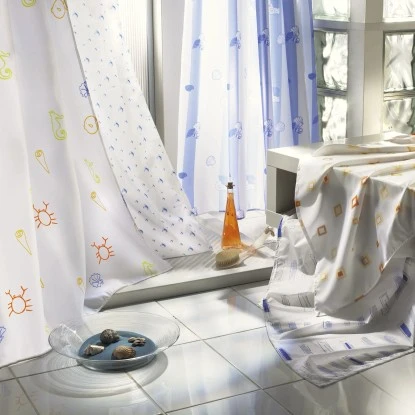 Duschvorhang (100 % Polyester) im trendgerechten, attraktiven Design. Wasserabweisend ausgerüstet und bei +40 °C waschbar. Verstärkte Lochleiste mit stabilen Ösen. Beschwerungsband im unteren Saum. Schonwaschgang bis +40 °C, nicht bleichen, nicht für Trockner geeignet, nicht heiß bügeln. Vorsicht beim Bügeln mit Dampf, keine Chemischreinigung möglich.